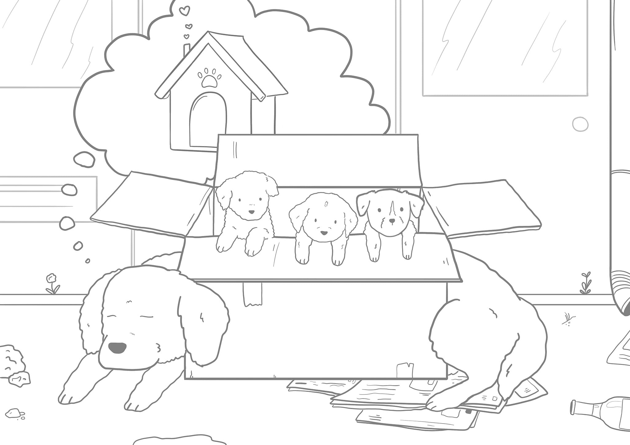 En collaboration avec des étudiants talentueux, des experts en comportement canin et des vétérinaires, nous avons identifié 20 problématiques auxquelles les propriétaires de chiens sont confrontés et les avons transformés en croquis que les plus petits peuvent colorier, le tout accompagné de textes explicatifs pour les aider à apprendre.